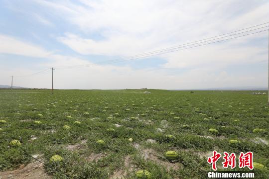 瓜田里的硒砂瓜即将成熟,等待采摘。杨迪摄