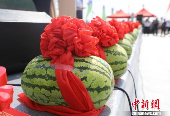 活动中摆放着成熟的硒砂瓜。杨迪 摄