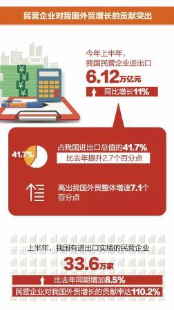 11%,这是今年上半年我国民营企业给出的外贸成绩单。海关统计显示,上半年我国外贸内生动力不断增强,民营企业持续发力,继续保持较快增长势头,成为拉动我国外贸的主力军。