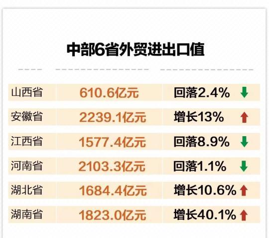 从海关总署12日公布的数据看,中西部地区外贸进出口表现活跃。从进出口增速看,位居前5位的省份分别是湖南、广西、四川、重庆、还有安徽,而湖北、云南、新疆也都保持了两位数的高位增长势头。