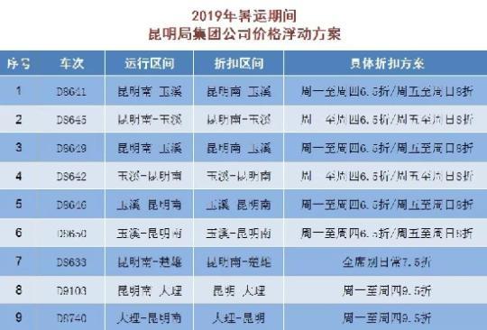 部分列车票价打折啦