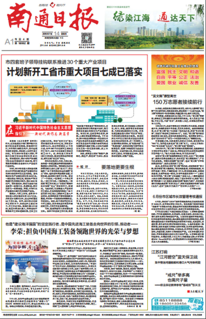 ▲7月14日《南通日报》A1版
