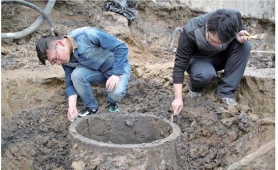 2015年5月 工作人员挖掘古井遗址↑↑↑