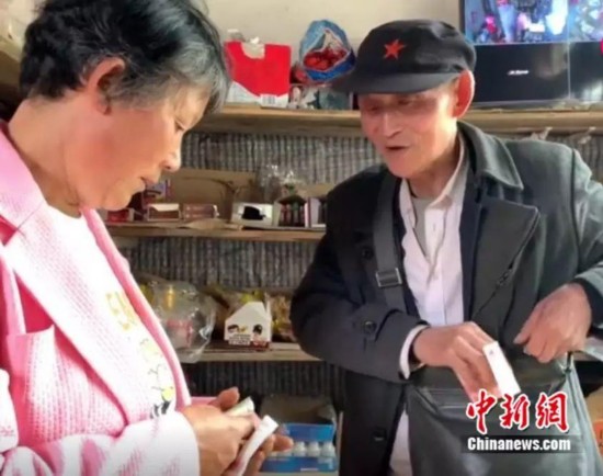 村民正在向梁先学老人付钱毕节市融媒体中心供图