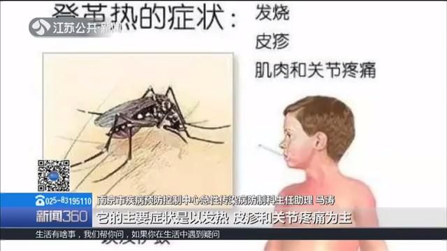 南京市疾病预防控制中心急性传染病防制科主任助理马涛介绍,登革热的主要症状是以发热、皮疹和关节疼痛为主,通常情况下是以病毒性出血热的症状为主,有极少数的病例可能会引起这种出血比较严重。一旦染上登革热,如果治疗不及时,有可能会导致死亡!