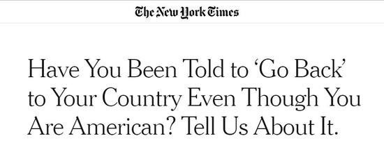 纽约时报:《即使你是个美国人,是否曾有人让你“滚回”你的国家?跟我们讲讲吧。》