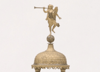 再如“铜镀金人指时刻分钟”。这款钟表上人物的动作表情、叶子的形状脉络、装饰的材料也很清晰。