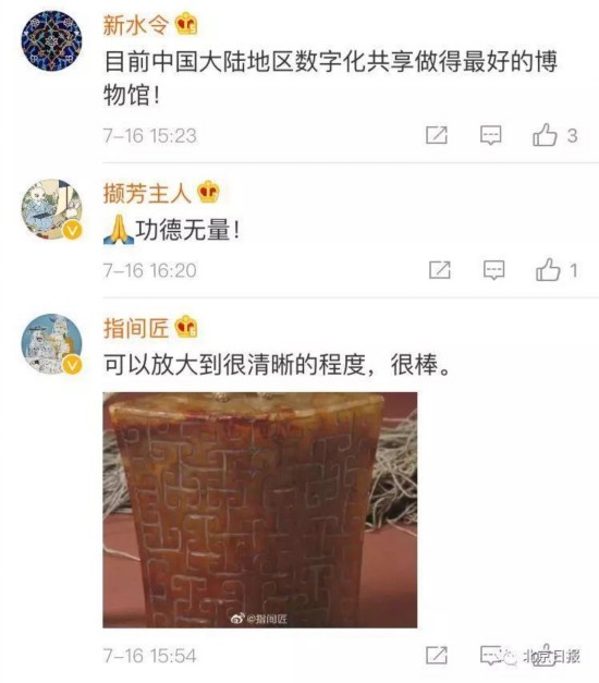 2019年7月16日下午3点整,@故宫博物院 官宣:故宫博物院数字文物库正式上线!故宫最全藏品信息就在这里,涵盖26大类文物,超过186万件/套文物基础信息,5万张精选文物影像。