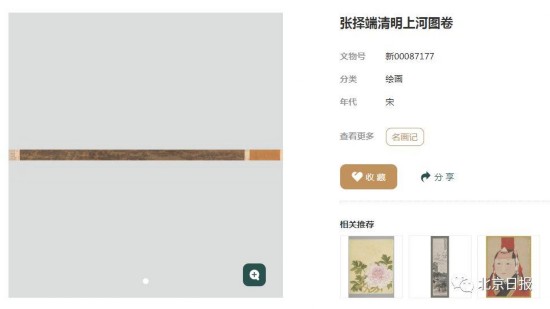 以“清明上河图”为例,打开它的详情页,不仅可以看到相应的文物号和年代,更能点击放大镜按钮,详细欣赏各处细节。