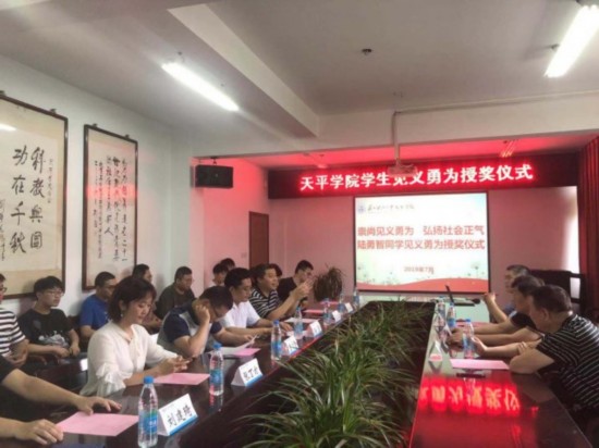 16日下午,苏州科技大学天平学院举行了陆勇智同学见义勇为表彰会,扬州见义勇为基金会办公室工作人员赶到苏州,为其颁发“见义勇为”证书!