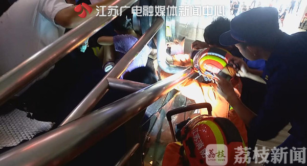 南京消防特勤一中队立即出动2车9人精干力量携带相关救援器材赶赴现。现场是一名7岁左右小女孩右手手指至手腕部位卡在扶手电梯上方底部,好在孩子情绪较为稳定。中队立即展开救援,并通知地铁工作人员联系电梯维修公司赶赴现场配合处置。