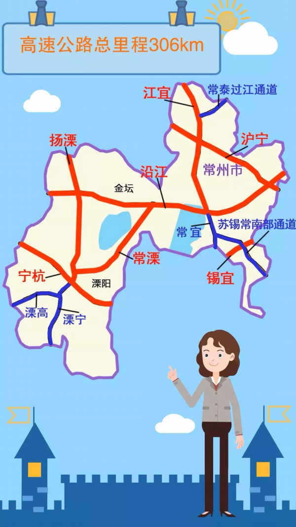 1996年第一条沪宁高速开通以来,常州已形成沪宁、锡宜、沿江、宁杭、扬溧、江宜、常溧“三纵四横一环”的高速公路网络,总里程306km。