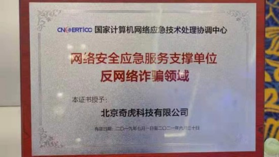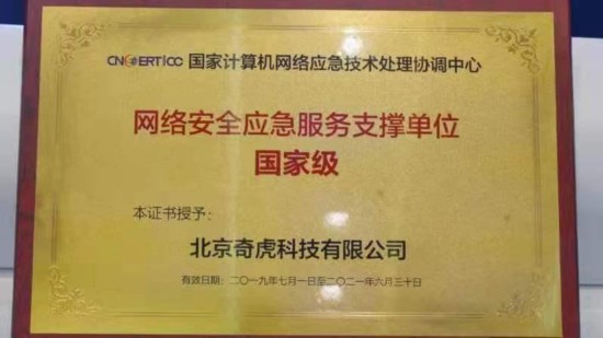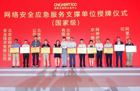 同时,CNCERT为第八届网络安全应急服务支撑单位进行了授牌仪式,360集团凭借应急服务规范、应急服务保障、技术实力等优势,成功当选CNCERT国家级与反网络诈骗领域网络安全应急服务支撑单位。