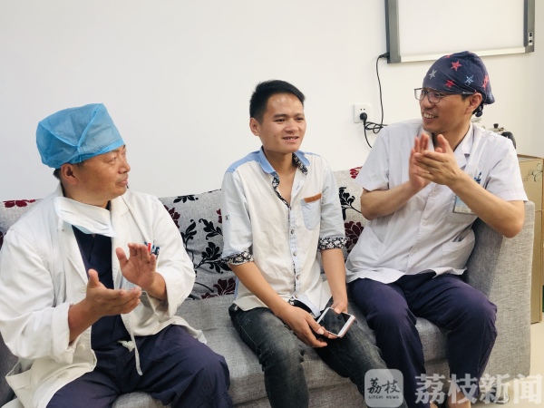交流中,韦承创告诉两位医生,这些年他返回贵州老家养病,渐渐离开了拐杖,收获了爱情,还做起了淘宝和直播。在直播平台,他歌唱生活并拥有了近11万粉丝。习惯了网上 “答谢”的他为什么会不远千里来常州答谢?韦承创朴实地回答:“没有他们,就没有今天的我,今天我能行走了,就一定要来当面感谢。” 他还精选了一首《我的快乐就是想你》唱给两位医生听。 “看到你恢复得这么好,并重拾起生活的信心,就是对我们医生最大的褒奖。”王医生还希望有天对他行走颠簸的问题进行治疗,“颠簸和腿不能太弯曲的问题都可以通过手术改善,等有时间再给你做手术,期待你和正常人一样行走自如。”