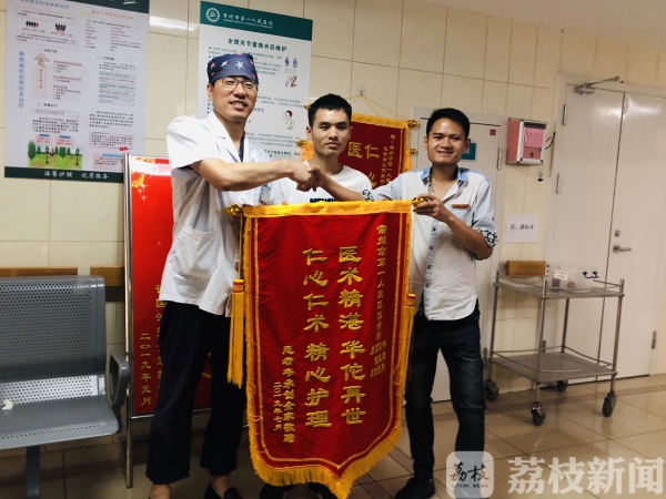 在感谢通过互联网分秒实现的今天,90后贵州水族小伙韦承创却执意坐着长时间的火车,一步一跛地走来表达感谢。7月16日下午,他和弟弟坐了27个小时的火车,从家乡贵州黔南州三都水族自治县来到常州,将一面锦旗送到王益民医生手中。“如果没有你们当年的手术,我可能这辈子都无法站立,谢谢你们。”韦承创激动地说。