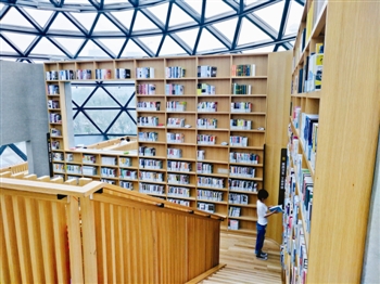 从外部看容湖书房,就是一座体积巨大的球形阳光房,坐落在马洲公园东北角,面朝容湖。走进书房,你会瞬间被一排排摆放整齐规整的图书所吸引,伴随着缓缓流淌的轻音乐,不由自主地缓步其间。