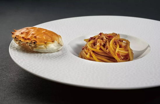 对于很多美食家来说,刘畅的菜非常有创意,并且注重味道的改良。比如,刘畅做的麻婆豆腐,他用的是中国豆腐做主要食材,而在酱料方面则是考虑用意大利南部普利亚那种很辣的香肠,确保味觉有不一样的层次感;大闸蟹意面是用中国的蟹粉加酱汁配黄酒,激发出大闸蟹的鲜美等等。
