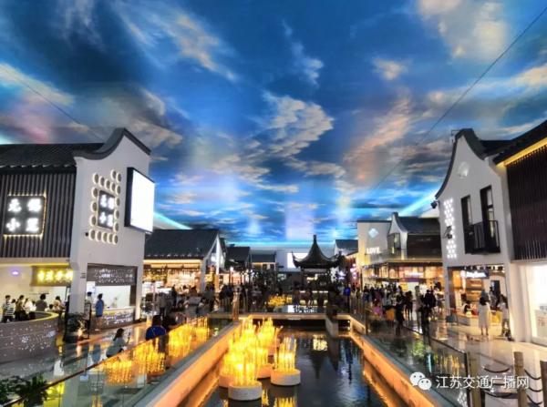 踏进服务区的瞬间,仿佛已身在吴地、衣袂沾香。屋顶投影的是目前国内体量最大、高度最高的7000平方米人工天幕,光影流转,内景外景,难分难辨。