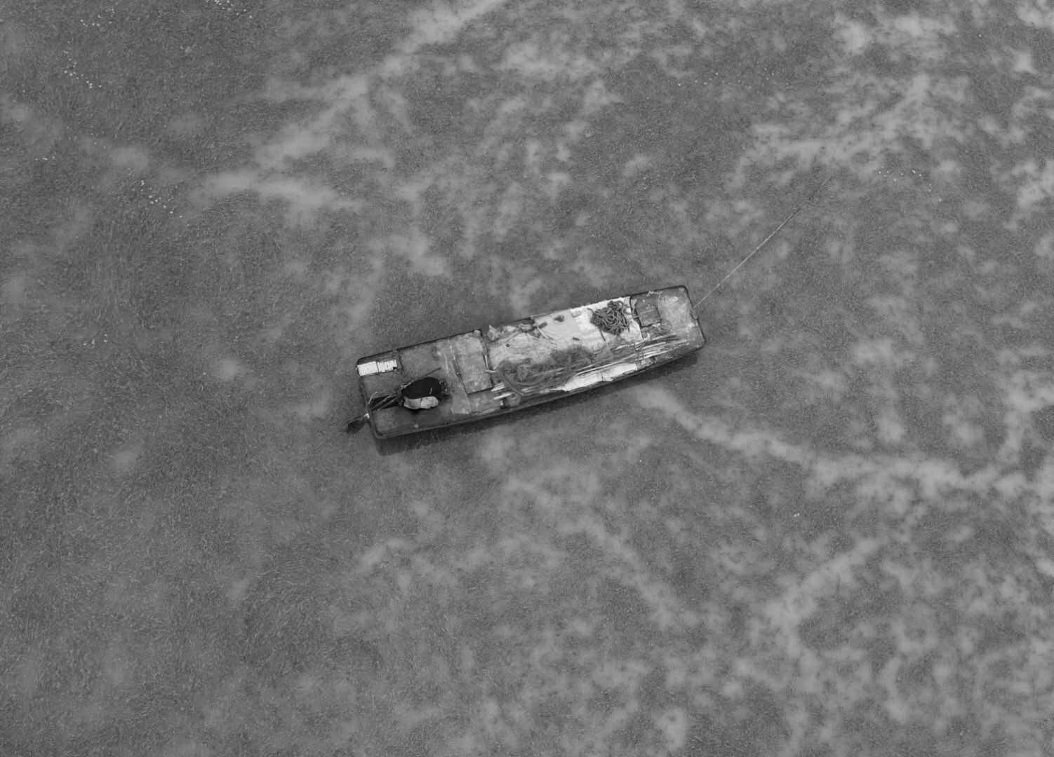 2019年7月18日,江苏省宿迁市泗洪县龙集高房咀洪泽湖水域,水量不足、水位偏低,湖面已退离岸边较远距离。