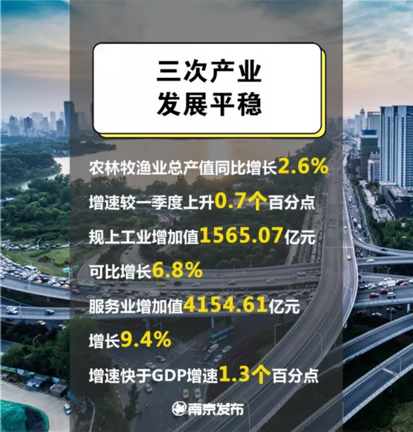 今天下午,市委市政府召开新闻发布会,发布了南京上半年经济半年报,延续了总体平稳、稳中有进的发展态势。