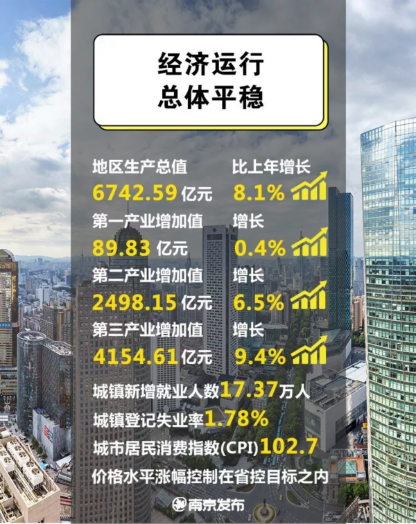 先来看GDP:全市地区生产总值6742.59亿元,比上年增长8.1%是全省第一!