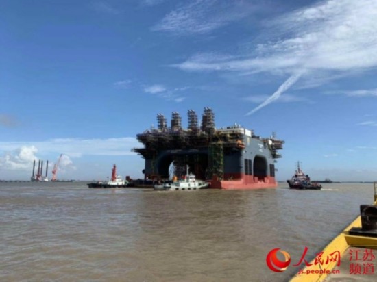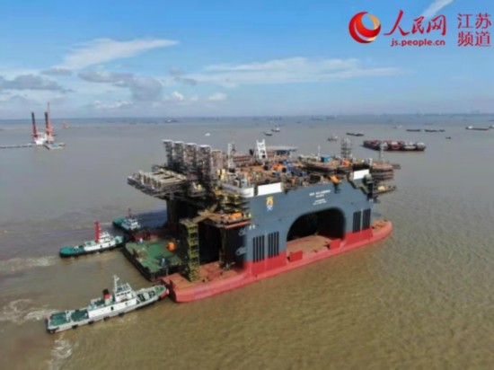 7月18日下午,在南通海事局的精心维护下,第二艘超大型半潜起重生活平台“招商16302”在船坞内通过驳船支撑顶托起浮后,在五艘大马力拖轮、两艘警戒船的协助下顺利拖移出船坞口驶向码头。