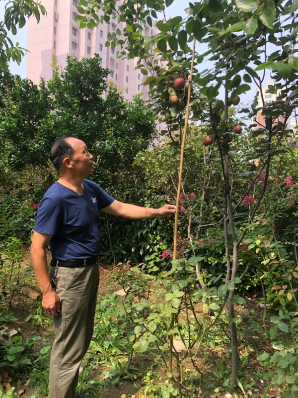今年67岁的曹月平老人五年前搬到月季花园小区居住,“我刚搬来时,小区里绿化也不错,但就是没什么特色,我在物业允许的情况下开始进行一些改造,做一些小景观,种上种类更多,色彩更丰富的花草树木。”曹月平说,他上世纪八十年代就爱上了养花,通过这么多年的琢磨,在种植技巧上还算有些心得。