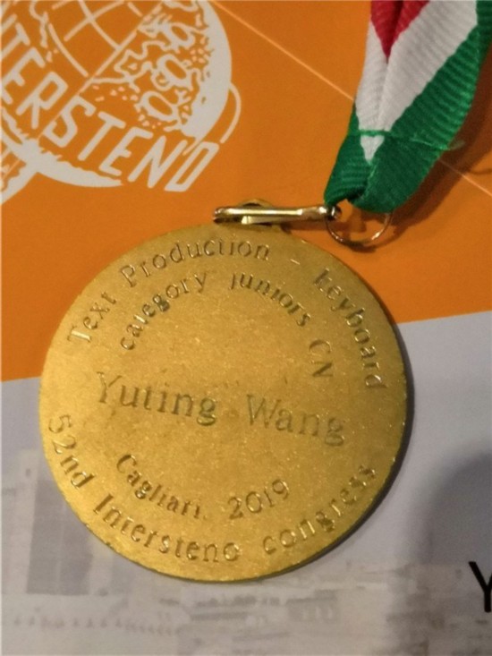 北京时间7月19日凌晨,第52届国际速录大赛在意大利撒丁岛卡利亚里闭幕。中国速录选手获得了7枚金牌、7枚银牌和4枚铜牌,在国际舞台上展示了指尖上的“中国速度”。其中,来自南京财经高等职业技术学校现代服务系文秘专业的女生王雨婷,获青年组看打(键盘组)冠军,这也是此次大赛中获冠军的唯一江苏选手。
