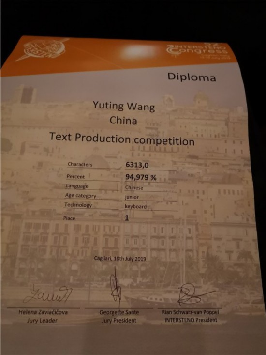 王雨婷获得的这个奖项有多牛?据悉,第52届国际速联大会暨国际速录大赛7月12日至18日在意大利撒丁岛卡利亚里举行,来自29个国家的300多名选手在文本创建(看打)、极限速记(听打)、实时记录(无校对听打)、文字处理(排版)和文函摘要(摘要)等项目中开展竞技。本届大赛我国组建了由职业院校师生及职业速录师24名选手组成的中国代表团,分别参加了少年组(16岁或以下)、青年组(17-20岁)和成年组(21岁或以上)的比赛。国际速联大会两年举办一次,期间最为重要的是举办国际速录大赛,这也是当今世界地位最高、影响力最大的速录行业赛事之一,被誉为“速录界的奥林匹克”竞赛,是速录行业国际组织成员展示和交流速录技能的重要平台。