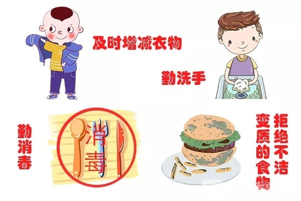 因此,在这个季节,宝爸宝妈要特别注意合理给宝宝增减衣物,尽量少去人流密集的场所。同时应加强自身以及宝宝的卫生护理,注意培养宝宝的日常饮食及生活卫生习惯,比如勤洗手,注意餐具消毒,不吃不喝可能变质、不洁的食物和饮料等。