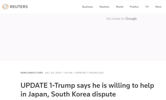 “他(文在寅)告诉我,他们现在在贸易上有很多摩擦,主要是在贸易上。日本有一些韩国想要的东西,他想让我介入其中,” 特朗普说,“所以,如果他们俩都想让我去(介入),我会这么做。跟日本和韩国打交道就像是一份全日制工作。但我喜欢这两名领导人。”