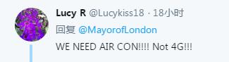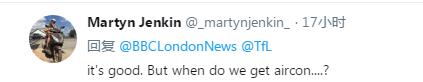 另一波网友焦点不在4G上,而是吐槽伦敦地铁没空调。据了解,伦敦部分地铁因未装冷气,在夏季高温环境下,车厢内温度有时能逼近40℃。这一点,一直遭人诟病。