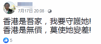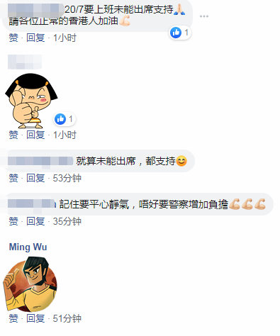 在“守护香港”集会的“脸书”页面,也有网友留言支持。