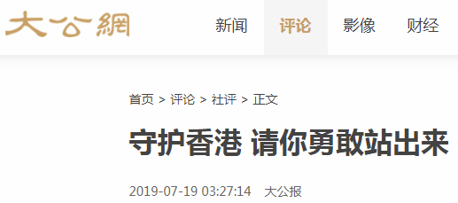 文章呼吁,正义终将不可战胜,“绝大多数和平理性的香港人已经压抑、愤怒、忍耐太久了!”“守护香港,刻不容缓。守护香港,人人有责。”