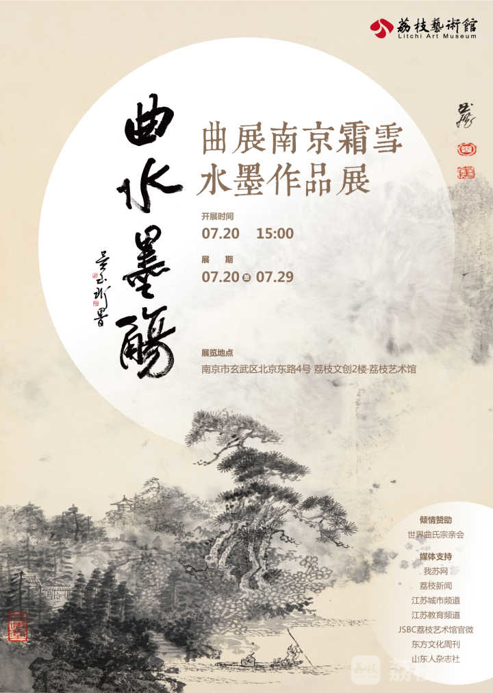 由江苏广电荔枝文创产业有限公司主办的曲水墨殇——曲展南京霜雪水墨作品展今天(7月20日)在荔枝艺术馆开展。画者曲展,将他三十多年探索和独创的霜画技巧通过一幅幅带有北国风情的作品生动地呈现在观众面前。
