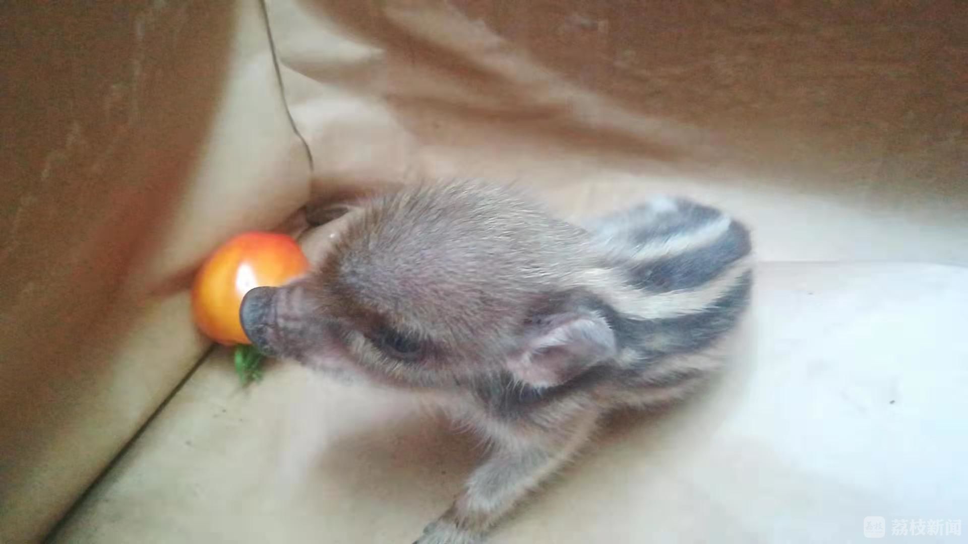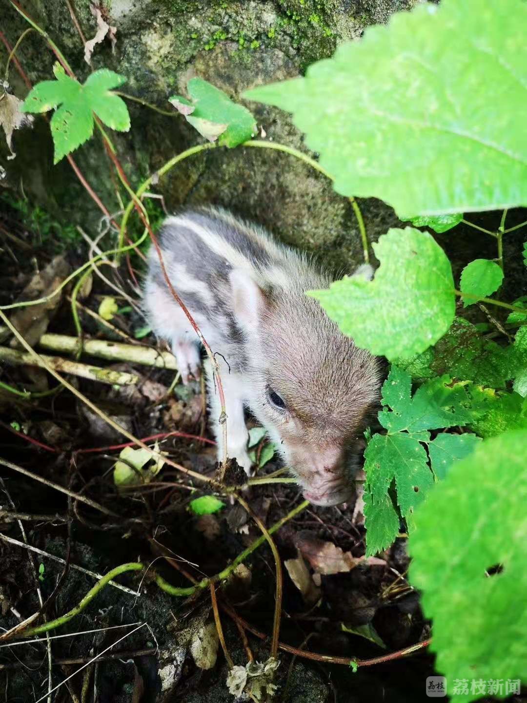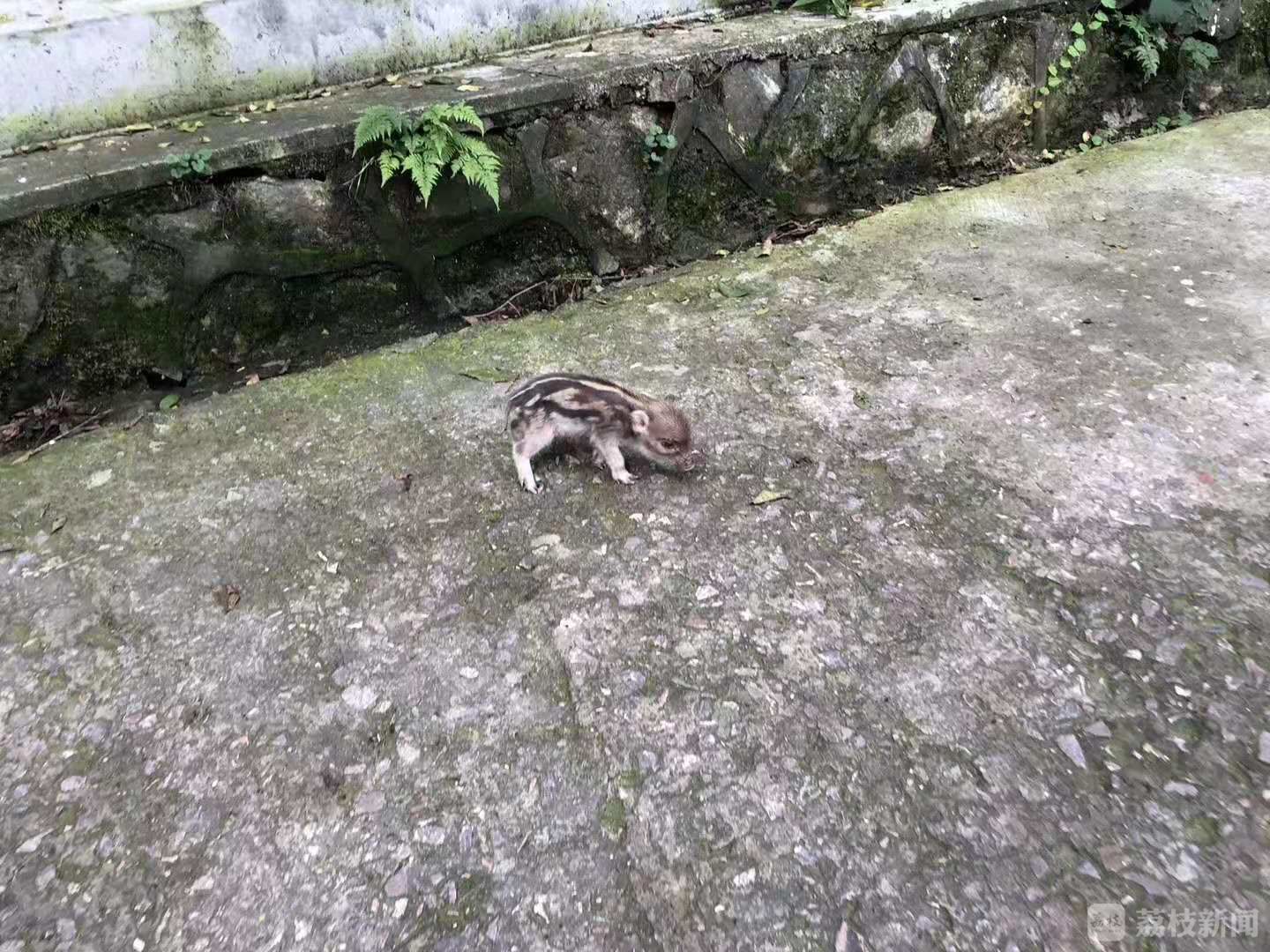 20日,多位登山市民发现两只疑似落单的小野猪,其中一只貌似刚刚出生,脐带才刚刚脱落;还有一只大一点的在山林间乱跑,大小和刚出生的猫咪差不多大,已经有了野猪身上的条色花纹了。