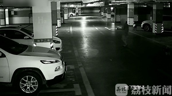 监控比较暗,看不清嫌疑人的面部。不过,两条狗很有特征,大狗是黑色的穿着粉色衣服。小狗是黑白相间,穿着花色衣服。民警分析,这名男子到车库遛狗,很可能就住在附近。而养狗的市民每天遛狗大多有固定时间,便在车库和小区里寻找。晚上8点多,民警在小区门口先是看到了监控中的两条狗。