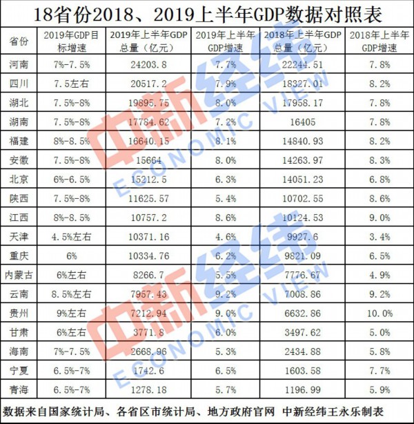 在全国2019年上半年宏观经济数据出炉后,各省份开始陆续发布上半年经济运行“成绩单”。据中新经纬客户端不完全统计,截至7月20日,已有河南、四川、湖北、湖南、福建、安徽、北京、陕西、江西、天津、重庆、内蒙古、云南、贵州、甘肃、海南、宁夏、青海等18省份交出上半年经济成绩单。