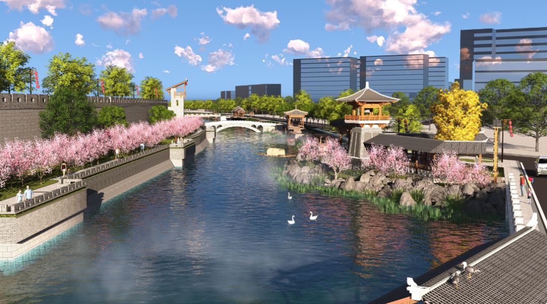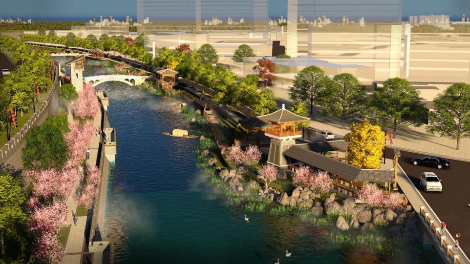 工程旨在以水环境系统治理为契机,建成一条综合安全、生态亮丽、河净水清、汉风文化、市民游乐的多功能水系廊道。