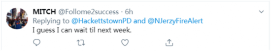 当地时间21日,新泽西州的哈克特斯敦市警察局也发出了“贴心”的提醒。
