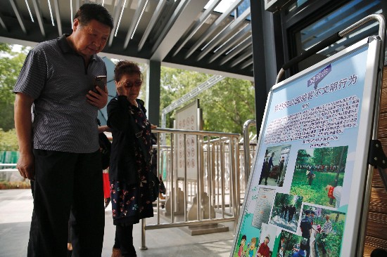今年5月,紫竹院公园门区设置的不文明游园行为“曝光台”。新京报记者 侯少卿 摄