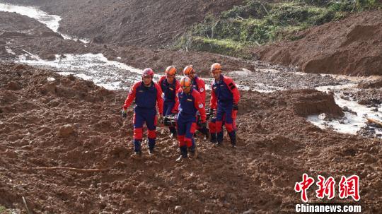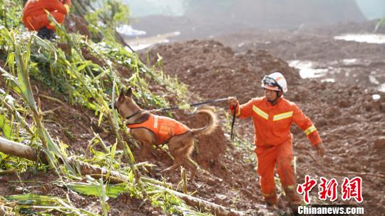 24日,贵州水城县鸡场镇山体滑坡现场。贺俊怡摄