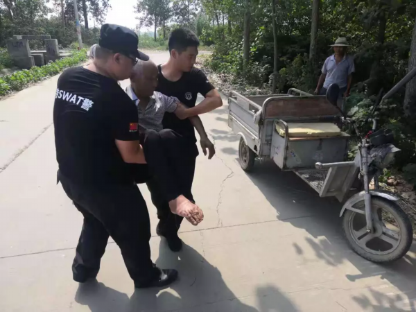 7月23日14时许,泗洪县公安局山河路派出所接到报警称,在泗洪县大楼街道小猪场附近河堆上,一名残疾老人三轮车翻倒需要帮助,民警得知情况后迅速赶赴现场。
