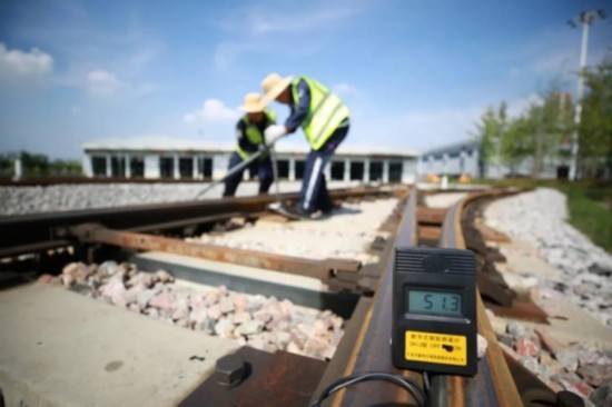 炎炎夏日,炽热难耐。有轨电车维保工作人员们迎来了夏季作业最艰苦的时候。上午十点半,在有轨电车车辆基地内,维保工叶正清正和同事们对车辆段轨行区进行巡视检修。烈日下,钢轨温度一度超过50度,行走在轨道上,能感受到一阵阵热浪扑面而来。汗水顺着大家的脸颊不停地流淌。叶正清说:“现在温度是35度,我们的轨温在52度左右,衣服湿了又干,干了又湿。”