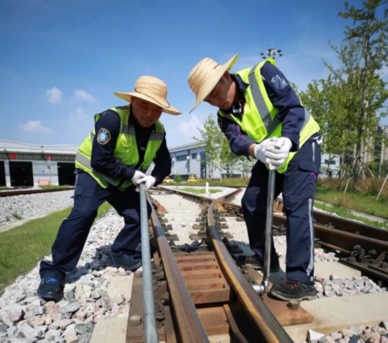 夏季高温,为了确保基地车辆段的安全运行,有轨电车维保部增加了每天日间巡查的频次。道岔检查、滑床板清理涂油、扣件紧固,基地内每一段钢轨上都留下了维保工人们辛勤的汗水。