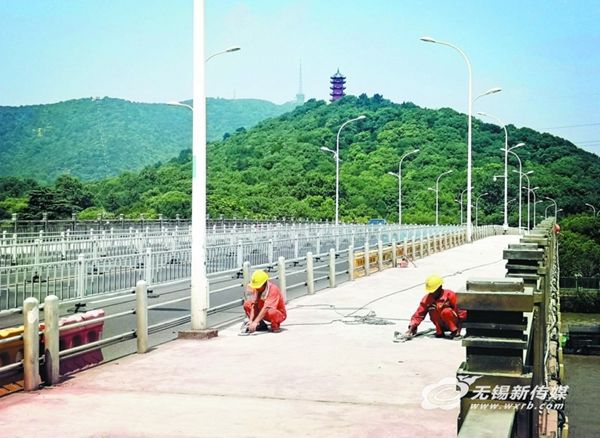 为此,本次维修工程已为锡山大桥更换桥梁橡胶底座120个、抗震挡块240个,梁体外侧涂刷了2800平方米的防腐涂料,桥面两端也重新摊铺了1200平方米沥青。“大桥外立面原来是混凝土本色,现在刷成了灰色,更加凝重大气。现阶段正在对2000多平方米的人非混行道面层进行全面改造,完工后路面不再斑驳,会与周边景色更加协调。”杨民益说。