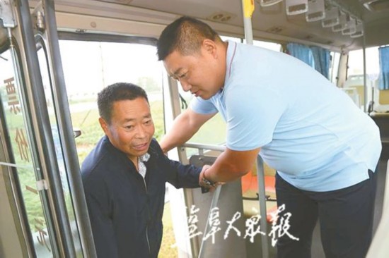 江苏诚达公路运输公司的王强师傅负责开早班车,他每天看到老两口早早站在路边等车,愁眉苦脸,于是跟这两位乘客拉起了家常。王强将老人因为乘车难而耽误放疗的情况反映给杨凤江经理,杨经理同意他每天提前半小时发车,保证老人顺利放疗。“王师傅每天提前半小时发车,我们准时赶到南县院,老伴得以顺利放疗。”刘龙珍感激地说道,王师傅在他的驾驶座后面留了两个专座和手机号码,还准备了茶水。