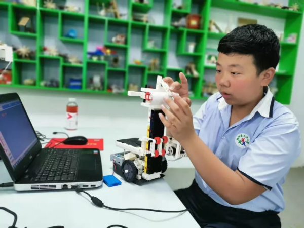 源于自己的兴趣爱好,赵子洲早在两年前就加入了学校的机器人社团。2017年,众兴小学开展了机器人IER智能机器人项目,在同学们的努力下,2018年获得江苏省中小学生机器人竞赛第二名,今年5月获得江苏省冠军,并作为江苏省唯一的代表队参加了第二十届全国中小学电脑制作活动机器人竞赛,在31个省代表队中荣获二等奖。
