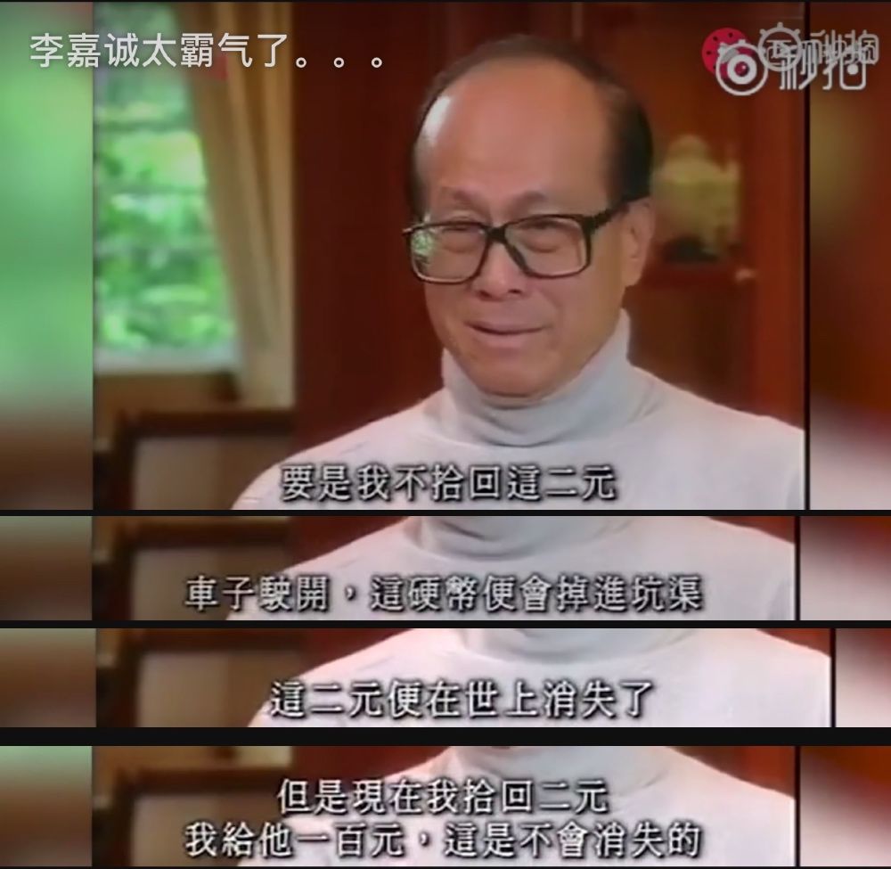 首先要说的是,并非与李嘉诚偶遇的只会是富人。多年前李嘉诚曾经掉了2元硬币在车轮底,被保安帮忙捡起来之后,李嘉诚赠与了保安100元,理由是“钱可以用,但是不可以浪费。”李嘉诚认为,如果这2元钱不被捡起来,就会掉进坑渠,在这个世界上消失,而现在他拾回2元,给保安100元,这102元都不会消失。