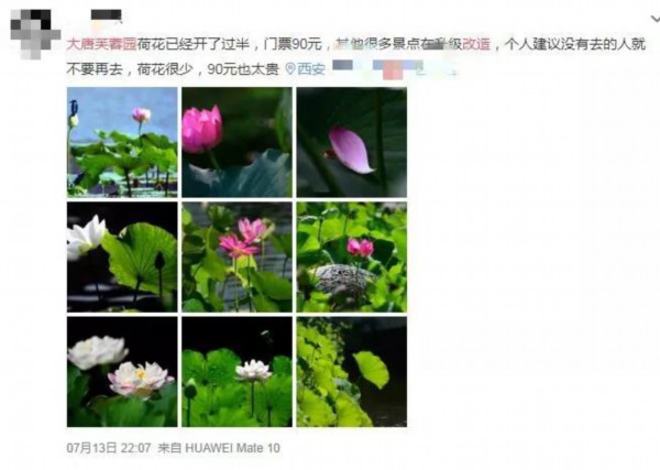 微博网友@sxf680 图崔先生周末去西安大唐芙蓉园游玩,入园后发现,景区内多处施工封路,园区内的部分景点也因施工关闭,但是自己为这样的体验还买了不算便宜的90元的门票,因此,崔先生提出了质疑:“既然园区整修,为何还要高价售票呢?”